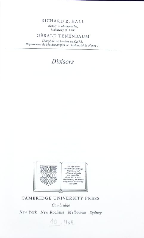 Divisors (Cambridge Tracts in Mathematics)