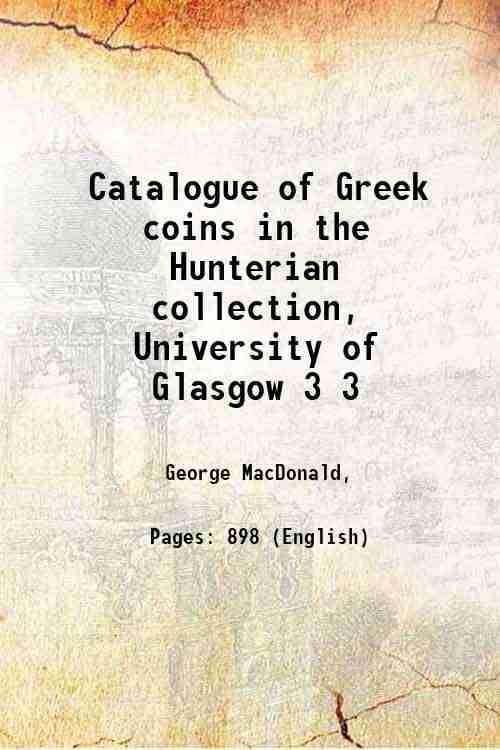 Discover the ‘Catalogue of Greek coins in the Hunterian collection, University of Glasgow Volume 3’ by George MacDonald. Published by Facsimile Publisher, this comprehensive hardcover catalog offers an in-depth exploration of historical Greek coinage. With 898 pages of detailed information and analysis, this book is an essential resource for numismatists, historians, and collectors interested in ancient Greek history and artifacts. Perfect for readers aged 10 and up, this English-language volume provides an invaluable scholarly reference. Explore the rich numismatic heritage housed within the renowned Hunterian collection. Add this significant historical volume to your collection from The Bookish Owl today.