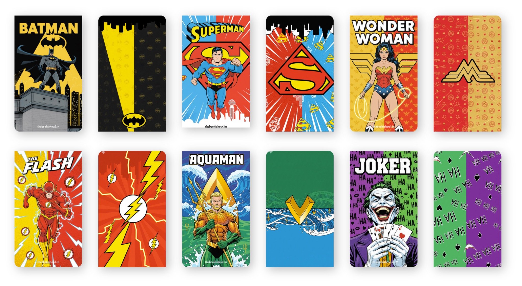 This premium set features DC-inspired comic artwork showcasing iconic superheroes and villains — dark knights, speedsters, warriors, ocean kings, and chaotic masterminds — all illustrated in bold, classic comic-book style.