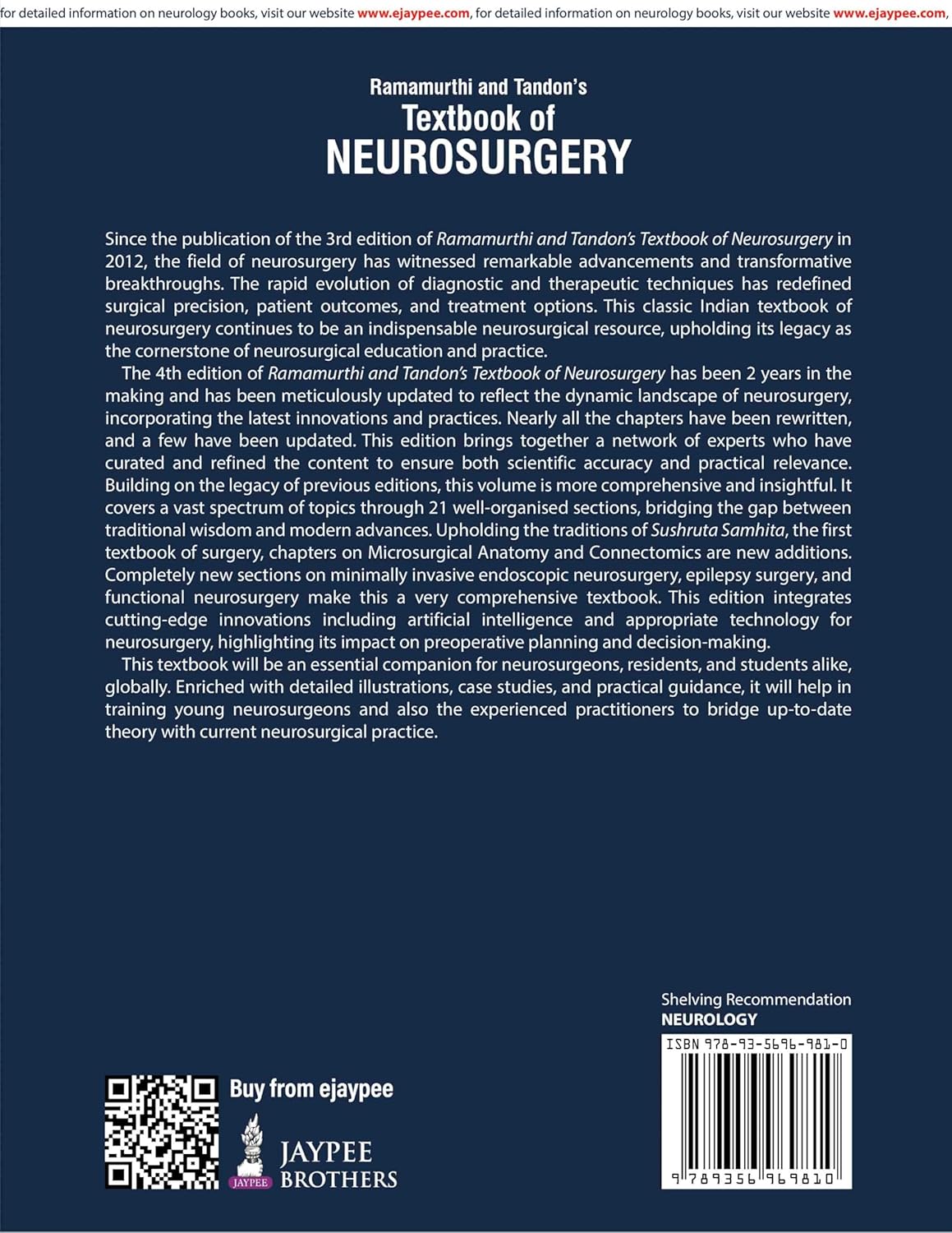Ramamurthi and Tandon’s Textbook of NEUROSURGERY (4 Volumes)